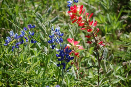 Blue and red Texas flowers